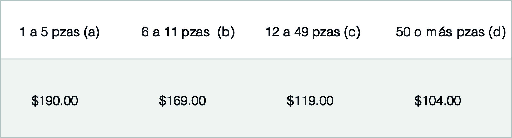 Suma piezas: El precio de todo tu pedido bajará automáticamente al alcanzar los niveles de escala: